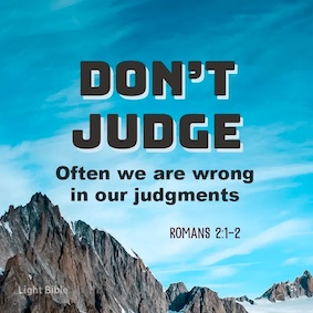This is a pretty consistent theme in the New Testament. Jesus certainly makes it clear that judging is unacceptable. In more than one Gospel the message is clear: don't judge. We humans do it though! We judge for lots of reasons. One of the not so nice reasons is to make ourselves feel better. If we can judge someone to be worse than ourselves, it can make us feel superior. Often people caught doing something will turn and say that it's not as bad as what "so and so" does. Other times, we make a judgment and spread whatever we think we know about another's behavior as gossip. It gives us a sense of power to act like we "know" everything. And often we are wrong in our judgments. Spreading gossip can ruin a person's reputation often without any substance behind it. We also tend to make judgments based on color, race, gender, age, ethnicity, all sorts of things that bias us. If you were sick in a foreign country, would you trust the doctors? If you see...