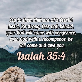 Say to them that are of a fearful heart, Be strong, fear not: behold, your God will come with vengeance, even God with a recompence; he will come and save you.