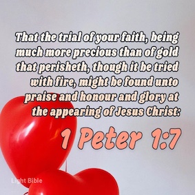 That the trial of your faith, being much more precious than of gold that perisheth, though it be tried with fire, might be found unto praise and honour and glory at the appearing of Jesus Christ: