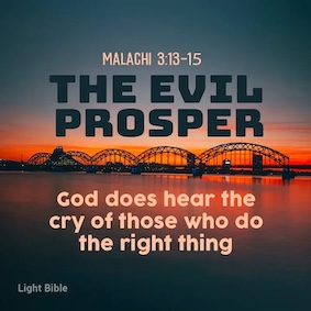 This is such a common complaint! Why do the evildoers prosper and the good so often don't? Of course the answer is pretty obvious, those who don't care how they succeed, who are willing to lie, cheat, step on others to get what they want, get it. Often those who do the right thing are the ones that are stepped on. God does hear the cry of those who do the right thing, but people don't always get the answers that they want, or they don't see them. Eventually, those who get to the top by illegal or immoral means get found out. We don't always see their fall from grace because others cover up the issues so that the whole structure of a company won't collapse. Other times, we all know what happens because it makes the front page of the paper and the news. The truth will out, as they say. It can be difficult to watch while it is happening, however, especially if we are the ones getting stepped on! I suppose it doesn't help to know that this has been going on for millennia, and it probably will go on as long as human beings roam the earth. The question for us, then, is will we follow the commandments and walk in the footsteps of Jesus even though we may become victims of the unscrupulous, or will we decide that it's not worth it to do the right thing? As we see, it's an age old question and we all have to come up with our own answer.