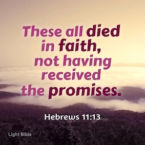 These all died in faith, not having received the promises, but having seen them afar off, and were persuaded of them, and embraced them, and confessed that they were strangers and pilgrims on the earth.