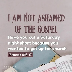 Paul was a learned Jew who had first been an opponent of the early Christians even to the point of participating in the stoning of St. Stephen and the imprisonment of other Christians. When he became a Christian himself and then began preaching the Good News of salvation, he was driven out of town by the Jews who believed he was a fraud out to entrap them. Some probably believed he was a traitor to Judaism. Either way, he spent the better part of his life preaching to the Gentile world. He was not afraid to admit he had been wrong about Jesus, about Christianity. He was not ashamed to preach his new found truth. Most of us have always been Christian. Have you ever been ashamed to admit it? Now, I'm sure not all of you go to church on a regular basis, so I'm not judging, but I do have a question for those of you who do. Have you ever been embarrassed while on vacation or while attending a conference to ask where the nearest church is ...
