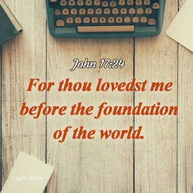 Father, I will that they also, whom thou hast given me, be with me where I am; that they may behold my glory, which thou hast given me: for thou lovedst me before the foundation of the world.